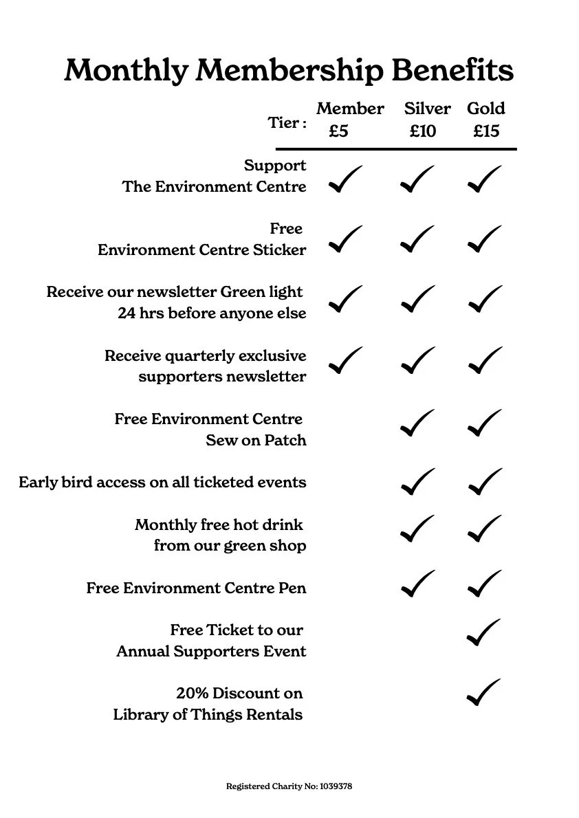 Membership starts from £5 a month, and as a member you are also eligible for some special Environment Centre treats as a thank you for support