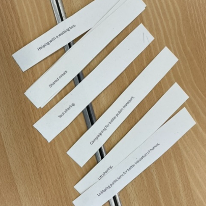 With the central aim of reducing carbon emissions, Sue’s side of the project involves working with groups to figure out how they can reduce their carbon footprint. She separates this work into three categories – individual changes, collective action, and the push for political action.
